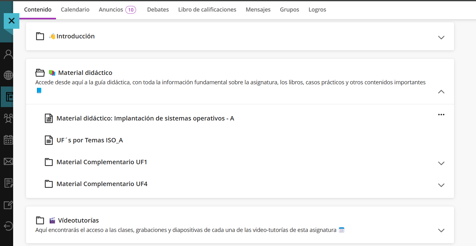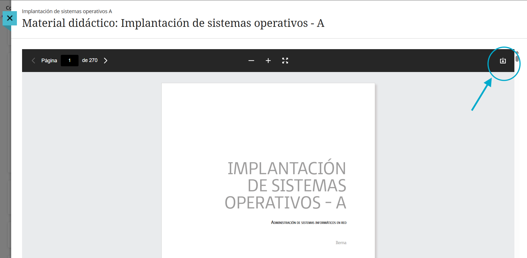 - Selecciona el módulo del que quieras descargar el material didáctico y, bajando por la pantalla encontrarás la sección 'Material didáctico'.