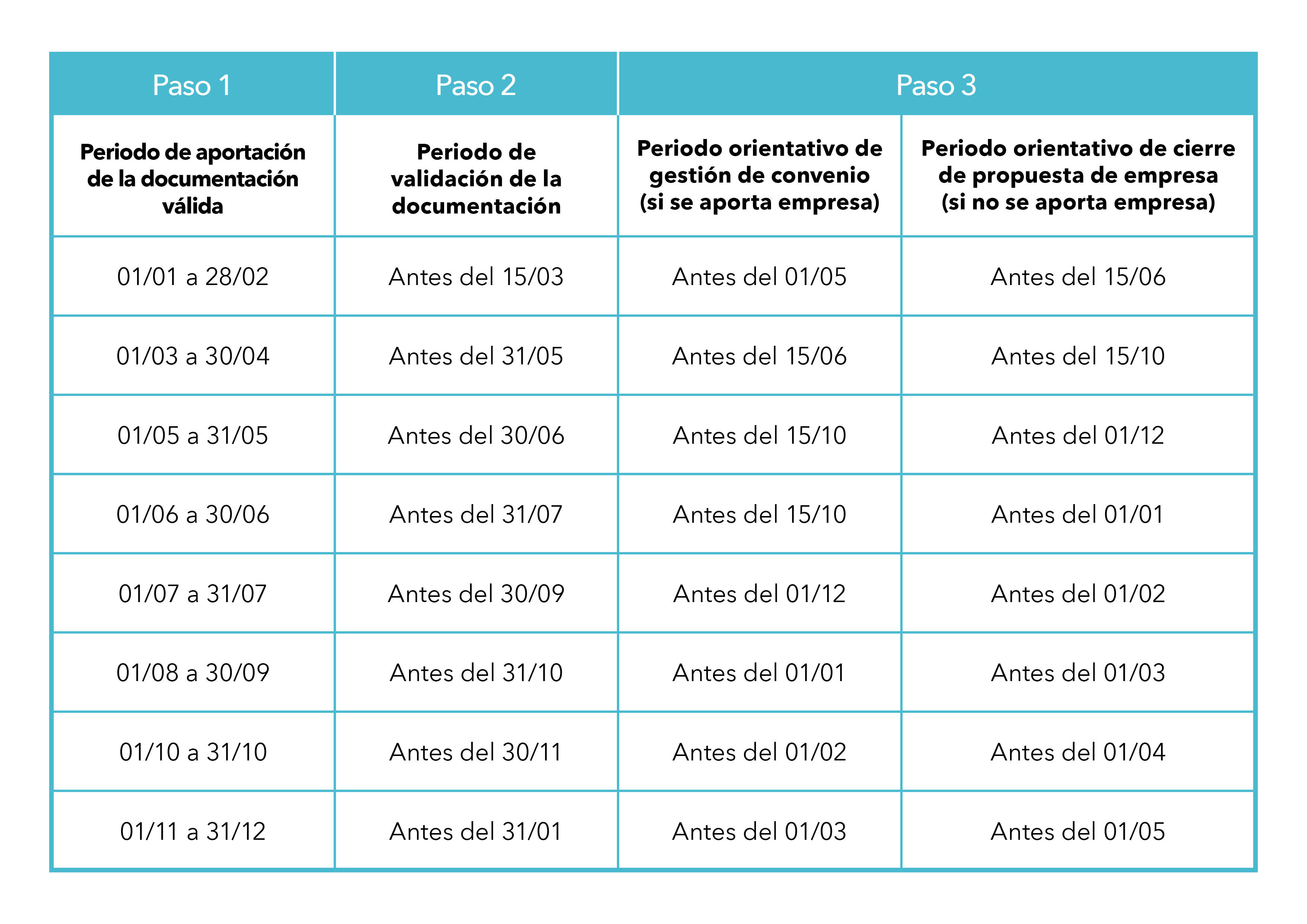 - En caso de pedir una exención del 50%: deben constar cotizadas la mitad de horas del módulo/crédito de la FCT del ciclo matriculado.