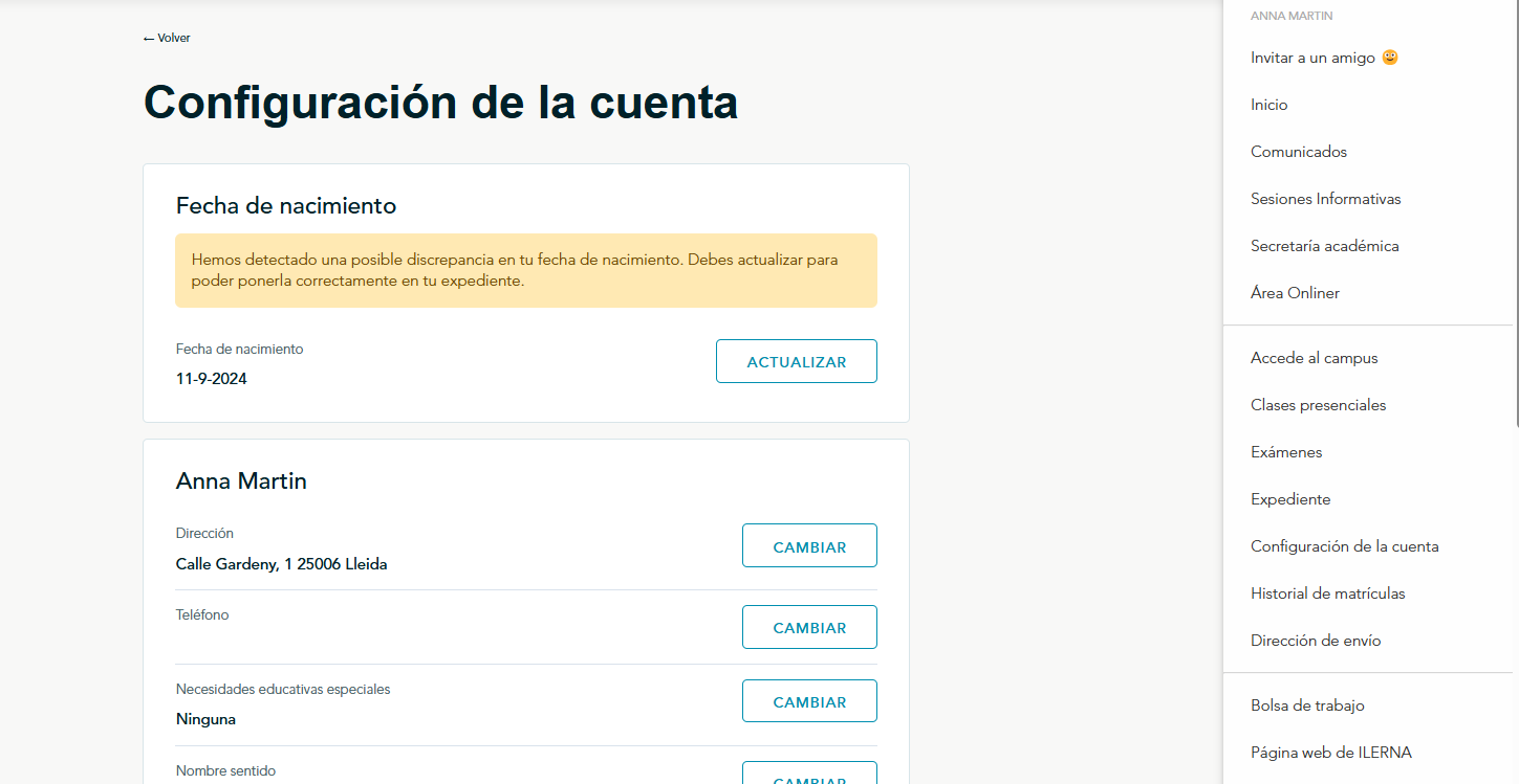 Tu cuenta de iLERNA te permite administrar tus direcciones, matrículas, así como trámites y documentación académica. Cuando inicies sesión podrás realizar una nueva matrícula, modificar tus datos personales, revisar tu historial y los detalles de todas tus matrículas.